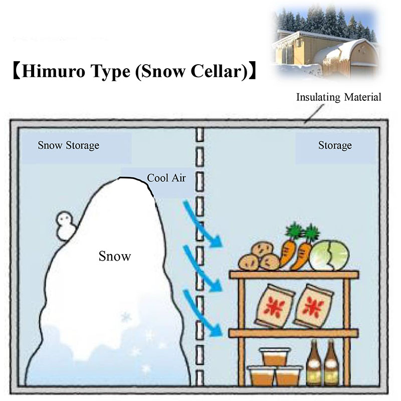 “Yukimuro” snow cellars have been in use since days long past. They are made of winter snow, which is collected into a large pile and covered with straw and other materials to prevent the snow from melting. This is then used to store things such as food until summer.